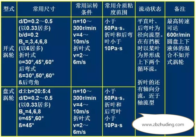 涡轮搅拌器速度较大,300~600r/min。直叶和弯叶涡轮搅拌器主要产生径向流,折叶涡轮搅拌器主要产生轴向流。