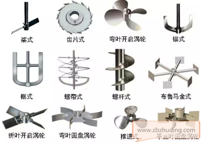 桨式、推进式、涡轮式和锚式搅拌器在搅拌反应设备中应用广泛,据统计约占搅拌器总数的75~80%。